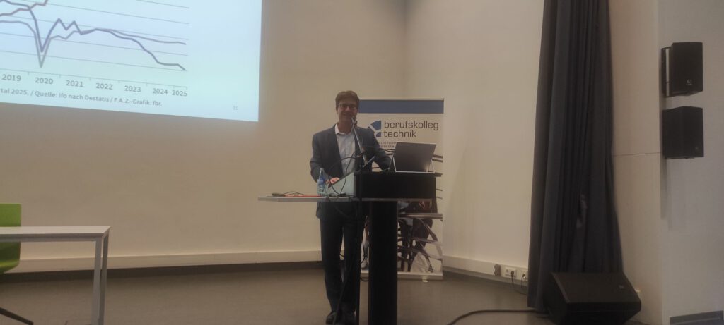Zum „Zweiten Wirtschaftspolitischen Gespräch am Berufskolleg Technik Siegen“ konnte in diesem Jahr der Hauptgeschäftsführer der IHK Siegen, Herr Dr. Thilo Pahl, gewonnen werden.